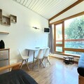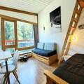 Imagine waking up to the serene beauty of snow-dusted fir trees and the crisp alpine air, with the slopes just outside your door. This charming studio cabin, nestled between the picturesque villages of Le Charvet and Les Villards, offers a true ski-in/ski-out experience for those seeking the ultimate mountain getaway. Whether you're a seasoned skier or a first-time visitor, the convenience of stepping directly onto the snow front will make your holiday unforgettable. The residence’s south-facing balcony provides a tranquil retreat to soak in the stunning views of the fir trees and the bustling snow front, while the northwest orientation reveals breathtaking vistas of the valley below. \n\nDesigned to accommodate up to five guests, this 25m² studio cabin is thoughtfully arranged for comfort and functionality. The cabin features two cozy bunk beds, perfect for children or friends, while the living room offers a versatile sofa bed with a pull-out option that transforms into a double bed and an additional single bed. The well-equipped kitchenette includes modern appliances such as a mini-oven, microwave, refrigerator-freezer, dishwasher, washing machine, and even a Nespresso coffee maker for your morning brew. After a day on the slopes, unwind in the warm ambiance of the living area, complete with a flat-screen TV and free Wi-Fi to stay connected. \n\nThe residence boasts convenient amenities, including elevators, covered parking nearby (available for a fee in winter), and a ski cellar for easy storage of your gear. The inter-resort shuttle stop at Charvet ensures seamless access to explore the surrounding villages and attractions. For added convenience, cotton or eco-friendly sheets and end-of-stay cleaning services are available at an additional cost. \n\nWhether you're here for the thrill of skiing, the charm of the alpine villages, or simply to relax amidst nature, this studio cabin is the perfect base for your adventure. With its unbeatable location and cozy amenities, it promises a memorable stay in the heart of the French Alps.