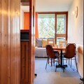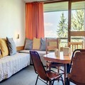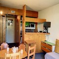 Bathed in sunlight and perched above the charming lower square of Village des Villards, this delightful apartment offers a tranquil retreat in the heart of Les Arcs 1800. From its southwest-facing balcony, soak in panoramic views of the valley while enjoying the warmth of the alpine sun. Whether you're seeking a cozy winter escape or a summer adventure, this residence invites you to experience the magic of the French Alps in comfort and style. \n\nStep inside this thoughtfully designed 33m² apartment, perfect for up to five guests. The space features a welcoming entrance hall, a separate toilet, and a fully equipped kitchenette with modern appliances including an oven, microwave, refrigerator, and dishwasher. The living room boasts two single beds and a flat-screen TV, creating a cozy spot to unwind after a day of exploration. The SNCF-style bedroom offers three single beds, including two bunk beds, making it ideal for families or small groups. A bathroom with a bathtub completes the layout, ensuring convenience and relaxation. \n\nLocated in the quiet Villards area, the residence is easily accessible with elevators and nearby parking options, including Villards covered parking and Chante Mouche outdoor parking. The inter-station shuttle stop at Villards Train Station ensures seamless connectivity to the surrounding attractions. \n\nWith eco-friendly linens and optional end-of-stay cleaning services, this apartment combines sustainability with comfort. Whether you're here to ski the legendary slopes of Les Arcs or explore the lush trails in summer, this residence offers a perfect base for unforgettable alpine memories.