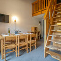 "Jettay Choucas 127", 3-room apartment 50 m2 on 2 levels on 2nd floor. Living/dining room with TV (flat screen). Exit to the balcony. 1 room with 1 double sofabed (1 x 140 cm, length 190 cm). Kitchenette (oven, dishwasher, 2 ceramic glass hob hotplates, microwave, electric coffee machine). Bathroom, sep. WC. Heating. Upper floor: 1 room with 1 french bed (140 cm, length 190 cm). Gallery with 1 pull-out bed (2 x 80 cm, length 190 cm), separate WC. Balcony, west facing position. Beautiful view of the mountains. Facilities: hair dryer. Internet (WiFi, extra). Please note: maximum 1 pet/ dog allowed. Smoke alarm. Warning: the double bed in the gallery is a "mezzanine" bed accessed via a ladder. Choucas entrance. Instead of an enclosed bedroom, some sleeping areas are located in an open-plan area (gallery, alcove, etc.). 73257002448AK