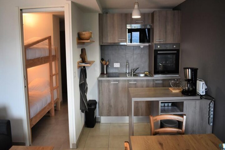 Perched on the edge of the charming Charvet village in Les Arcs, this cozy studio offers a serene alpine retreat with breathtaking views of Mont Blanc and the surrounding valley. Whether you're seeking adventure on the slopes or a peaceful escape, this property combines convenience and comfort in the heart of the French Alps. The west-facing balcony invites you to unwind with a cup of coffee as the sun sets over the majestic peaks—a perfect moment to savor the tranquility of mountain life. \n\nDesigned for up to four guests, the studio features a well-appointed living space with a sofa bed and a sleeping alcove with bunk beds, making it ideal for couples or small families. The open-plan kitchen is equipped with modern appliances, including ceramic hobs, a conventional oven, and a microwave, ensuring you can prepare hearty meals after a day of outdoor activities. The shower room is compact yet functional, and the property is thoughtfully designed to provide a comfortable stay, including eco-friendly linen options and additional housekeeping services. \n\nAccess to the slopes is effortless, with a free shuttle service or an 8-minute walk connecting you to the vibrant resort area. For winter travelers, ski lockers and paid parking facilities are available, making your stay hassle-free. In summer, the region transforms into a haven for hikers and nature enthusiasts, with trails that lead to awe-inspiring vistas and alpine meadows. \n\nWhether you're here to ski, hike, or simply relax, this studio offers a gateway to unforgettable alpine adventures. Let the beauty of Mont Blanc and the charm of Les Arcs inspire your next mountain getaway.