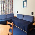 Designed to comfortably accommodate up to five guests, this 30m² studio cabin is thoughtfully arranged with a sleeping alcove featuring bunk beds and a trundle bed, as well as a living area with two single beds. The kitchenette is fully equipped with modern appliances, including a dishwasher, microwave, and coffee maker, ensuring you have everything needed to prepare hearty meals after an active day. The cozy living space, complete with a TV and free Wi-Fi, invites you to unwind and share stories of your mountain adventures.