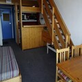 This charming 52m² duplex, located on the 4th floor of Tournavelles 1, comfortably accommodates up to seven guests. The living room, with its cozy pull-out sofa bed, opens to a west-facing balcony offering panoramic views of the resort and valley below. The mezzanine level features three single beds, while a separate bedroom provides three bunk beds, ensuring ample space for families or groups of friends. The fully equipped kitchen, complete with modern appliances, invites you to prepare hearty meals after a day of exploration. A bathroom with a bathtub and a separate toilet add to the convenience, while Wi-Fi and a television in the living room ensure entertainment and connectivity.