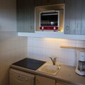 The thoughtfully designed 30m² space comfortably accommodates up to four guests. The living room features a pull-out sofa bed, while the separate bedroom offers two single beds for restful nights. The open-plan kitchen is fully equipped with modern appliances, including a dishwasher, oven, and microwave, making it easy to prepare meals to enjoy in the comfort of your home away from home. Additional amenities such as a television, washing machine, and ski locker ensure convenience throughout your stay.