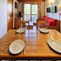 Inside, the apartment is thoughtfully designed for up to six guests, blending comfort with practicality. The open-plan living area features a cozy sofa bed, while the fully equipped kitchen ensures you can prepare meals with ease. Two inviting bedrooms provide restful retreats: one with a double bed and en-suite bathroom, and another with two single beds. Modern amenities such as a flat-screen TV, WiFi, and a fondue set add to the charm, while the private covered parking and ski locker provide convenience.