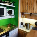 The 33m² apartment comfortably accommodates up to five guests, making it ideal for families or small groups. The living room features a single sofa bed, while the mezzanine floor offers a double bed and a sleeping alcove with bunk beds, perfect for children over six. The open-plan kitchen is fully equipped with modern appliances, including an electric stovetop, oven, microwave, dishwasher, and more, ensuring you have everything needed to prepare hearty meals after a day on the slopes. A cozy living area with a television and Wi-Fi access provides the perfect spot to unwind.