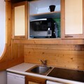 The 40m² apartment accommodates up to six guests, making it ideal for families or small groups. The living room features a convertible sofa bed, while the bedroom offers two single beds, and a cozy sleeping alcove includes a set of bunk beds. The open-plan kitchen is fully equipped with modern appliances, including a combination oven/microwave, dishwasher, and coffee maker, ensuring you have everything you need to prepare delicious meals. After a day on the slopes or hiking trails, unwind in the inviting living area with a warm drink and your favorite show on the flat-screen TV.