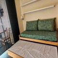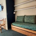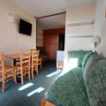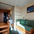 Step into a thoughtfully designed 25m² space, perfect for up to four guests. The studio features a southwest-facing balcony that captures the golden hues of the setting sun over the slopes. The living area is equipped with a single bed and a trundle bed, while a sleeping alcove offers additional flexible sleeping arrangements. A fully equipped kitchen, complete with a ceramic hob, oven, microwave, dishwasher, and refrigerator, ensures you can prepare hearty meals after a day of exploration. The bathroom, with its inviting bathtub, provides a relaxing retreat. Modern conveniences like a television and elevator access enhance your stay, while the pet-friendly policy ensures no family member is left behind.