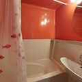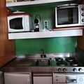 Designed to comfortably accommodate up to five guests, the apartment features a thoughtfully arranged layout. The living room offers two single beds, while the bedroom includes a double bed and a set of bunk beds, ideal for families or small groups. The kitchen, fully equipped with modern appliances such as a dishwasher, microwave, and coffee maker, opens onto the living area, creating a welcoming space for shared meals and relaxation. A bathroom with a bathtub and a separate toilet adds convenience, and amenities like Wi-Fi and a television ensure a comfortable stay.
