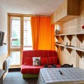 Compact yet thoughtfully designed, this 19m² studio accommodates up to three guests, making it ideal for couples or small families. The living room features a comfortable sofa bed, while a sleeping alcove with bunk beds adds a touch of charm. The fully equipped kitchen includes modern appliances such as a microwave, oven, refrigerator, and dishwasher, ensuring you can prepare delicious meals after a day of exploring. A north-facing balcony invites you to unwind with views of the surrounding peaks, while amenities like Wi-Fi and a television provide added convenience and entertainment.