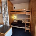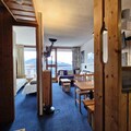Inside, the 40m² apartment is thoughtfully designed to accommodate up to six guests. The cozy living room features two single beds, while the separate bedroom also offers two single beds. A sleeping alcove with bunk beds adds a playful touch, ideal for families. The fully equipped kitchen, complete with an oven, refrigerator, dishwasher, and coffee maker, opens onto the living area, creating a warm and inviting space to gather after a day of alpine adventures. Modern conveniences such as Wi-Fi and a flat-screen television ensure a comfortable stay, while the bathroom with a bathtub and separate toilet adds practicality.