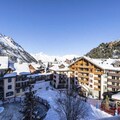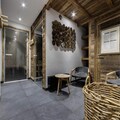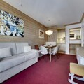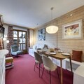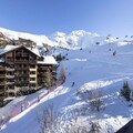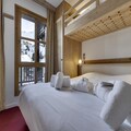 In the enchanting Arc 1950 village, where alpine charm meets modern luxury, the Hameau du Glacier Residence offers a unique blend of tranquility and adventure. This premium 5-star ski-in/ski-out property is nestled amidst breathtaking views of Mont Blanc and the Aiguille Rouge, providing an unforgettable mountain escape for families and groups. The pedestrian-only village ensures a peaceful atmosphere, while direct access to the Paradiski ski area opens up 425 km of pristine slopes for winter enthusiasts.\n\nApartment 528 is thoughtfully designed to accommodate up to six adults and one child. Its cozy living room features a sofa bed, while the open-plan kitchen is fully equipped for preparing hearty meals after a day on the slopes. The double bedroom boasts an en-suite bathroom, and the second bedroom includes two single beds and a charming mezzanine single bed, perfect for children. Additional amenities include a shower room, separate toilet, Wi-Fi, and an individual ski locker, ensuring convenience and comfort throughout your stay.\n\nGuests enjoy exclusive access to the residence's wellness area, featuring both indoor and outdoor pools, a rejuvenating outdoor jacuzzi, sauna, steam room, and a fitness center. In winter, added touches such as bathrobes, slippers, and beds made upon arrival enhance the experience, while nearby facilities like covered parking and ski rental shops make planning seamless.\n\nWhether you’re seeking thrilling ski adventures or serene moments soaking in alpine vistas, the Hameau du Glacier Residence is the perfect base for creating cherished memories in the heart of the French Alps.