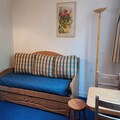 The studio is thoughtfully designed to maximize comfort within its 13m² space. The living area features a pull-out sofa bed, perfect for restful nights after a day of exploration. A fully equipped kitchenette, complete with a microwave, refrigerator, toaster, kettle, and coffee maker, allows you to prepare your favorite meals with ease. The modern shower room and separate toilet add convenience, while amenities like a television and Wi-Fi ensure you stay connected and entertained throughout your stay.