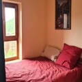 Designed to comfortably accommodate up to four guests, the apartment features a semi-enclosed bedroom with a double bed and a sleeping alcove with two bunk beds, making it ideal for families or small groups. The living room invites you to unwind with a flat-screen TV, while the kitchenette is equipped with everything you need to prepare meals, including an electric stovetop, microwave, refrigerator, and a Dolce Gusto coffee maker. A separate bathroom and toilet add to the convenience, and a ski locker ensures your gear is always ready for the next adventure.