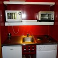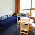 The 30m² studio is thoughtfully designed to accommodate up to five guests, making it ideal for families or small groups. The living area features two comfortable single beds, while a separate sleeping nook offers a set of bunk beds and a pull-out bed, ensuring restful nights for everyone. The fully equipped kitchen, complete with an electric stovetop, oven, microwave, dishwasher, and refrigerator, allows you to prepare hearty meals after a day on the slopes or trails. A cozy living room with a television and Wi-Fi access provides the perfect spot to unwind, while the bathroom with a bathtub ensures a relaxing end to your day.