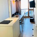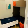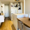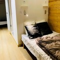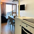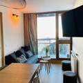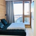 Designed to accommodate up to seven guests, the 56 m² apartment features a harmonious blend of comfort and practicality. The master bedroom offers a plush 160cm double bed and a flat-screen TV, while the cozy cabin rooms provide additional sleeping arrangements, including bunk beds perfect for children. The fully equipped kitchen, complete with a Nespresso machine, induction hobs, and a dishwasher, makes meal preparation a breeze. Two modern bathrooms, hardwood parquet flooring, and thoughtful amenities like free Wi-Fi and a ski locker ensure a seamless stay.