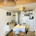 High above the Tarentaise Valley, where the snow-capped peaks of the French Alps meet the horizon, this beautifully renovated apartment in the Varet 2 residence offers a serene escape for ski enthusiasts and nature lovers alike. Located on the 7th floor, the property boasts breathtaking northwest-facing views of Mont Blanc and the valley, while its southeast-facing orientation reveals the vibrant slopes and resort below. The perfect alpine retreat awaits you here.