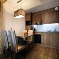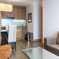Inside, the residence combines modern luxury with alpine charm. The apartments, accommodating from 2 to 10 guests, are thoughtfully designed with spacious living areas, fully equipped kitchens, and cozy bedrooms featuring plush bedding. Each unit includes a balcony, perfect for soaking in the mountain vistas. After a day of skiing or exploring, unwind in the relaxation area, complete with a heated indoor pool, sauna, steam room, and fitness center. With free Wi-Fi, flat-screen TVs, and end-of-stay cleaning included, every detail has been considered to ensure your comfort.