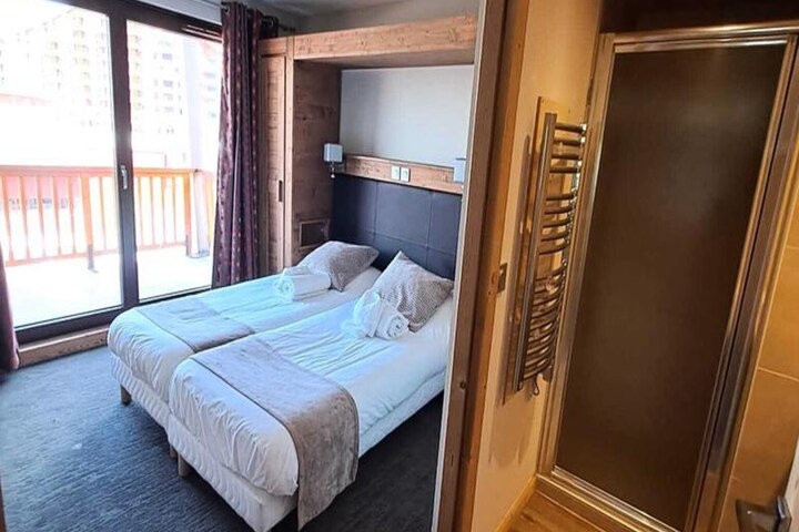 High above the Tarentaise Valley, where the snow-capped peaks of the French Alps stretch endlessly into the horizon, Residence La Source des Arcs***** offers a luxurious alpine retreat in the heart of Les Arcs 2000. This exceptional residence combines breathtaking mountain views with unparalleled comfort, making it the perfect choice for your next holiday. Imagine waking up to the crisp alpine air, enjoying pastries delivered straight to your apartment, and stepping out onto your private balcony to take in the majestic scenery. Here, every moment feels like a celebration of nature and relaxation. \n\nThe apartments are thoughtfully designed to accommodate groups of all sizes, from intimate getaways for two to spacious retreats for up to ten guests. Each apartment features a cozy living room, a fully equipped kitchen, and multiple bedrooms with flexible sleeping arrangements. The luxurious bathrooms and shower rooms ensure convenience, while the private sauna adds a touch of indulgence to your stay. Guests can also enjoy complimentary Wi-Fi, flat-screen TVs with international channels, and included linens and towels for ultimate ease. \n\nResidence La Source des Arcs***** boasts a range of premium amenities, including a heated indoor pool, sauna, steam room, and fitness center, perfect for unwinding after a day of skiing or hiking. The covered garage ensures your vehicle is safe, while pet-friendly options allow your furry friends to join the adventure. With ski slopes and lifts just steps away, you’ll have direct access to the renowned Paradiski domain, offering endless opportunities for winter sports and summer activities. \n\nWhether you’re seeking thrilling alpine adventures or serene moments of relaxation, this residence is your gateway to unforgettable experiences in the French Alps. Let the beauty of Les Arcs 2000 and the comfort of Residence La Source des Arcs***** create memories that will last a lifetime.
