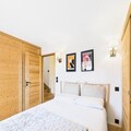 Step into your spacious 90m² duplex apartment, thoughtfully designed to accommodate up to eight guests, including a maximum of six adults. The property features three elegant bedrooms with plush 160x200cm beds and en-suite bathrooms, a cozy sleeping alcove with a sofa bed and TV, and two terraces offering stunning views of the fir trees and surrounding peaks. The south-facing terrace is perfect for soaking up the sun, while the northwest-facing terrace invites you to unwind as the sun sets over the mountains. The fully equipped kitchen, complete with high-end appliances like a Nespresso machine and induction hob, makes meal preparation a delight. Additional amenities include a washing machine, dryer, ski locker, and private parking for two vehicles.