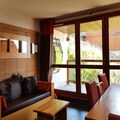 Spanning 60m², this thoughtfully designed apartment features a cozy living room with a double sofa bed, two bedrooms each with a double bed, and an alcove with bunk beds, perfect for children. The open-plan kitchen is fully equipped with modern appliances, including a ceramic hob, oven, microwave, dishwasher, and refrigerator, making it easy to prepare meals after a day on the slopes. Two bathrooms, one with a bathtub and the other with a shower, provide added convenience, while amenities like a television, DVD player, stereo system, and free Wi-Fi ensure a comfortable and entertaining stay.
