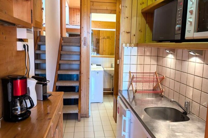 High above the Tarentaise Valley, where the alpine air is crisp and invigorating, this charming residence in Arc 1600 offers a serene retreat for your mountain getaway. With its traditional architecture and breathtaking views of the valley, the property is perfectly situated in a peaceful area, just moments from the slopes and a short five-minute walk to the vibrant resort center. Whether you're seeking thrilling winter adventures or tranquil summer escapes, this apartment is your gateway to the beauty of the French Alps. \n\nStep inside this cozy 42m² apartment, thoughtfully designed to accommodate up to six guests. The living room invites you to relax with its comfortable double sofa bed, while the separate bedroom features two sets of bunk beds, ideal for families or groups of friends. The well-equipped kitchenette includes an electric stovetop, oven, microwave, dishwasher, and refrigerator, allowing you to prepare hearty meals after a day of exploration. Modern amenities such as Wi-Fi, a television, and a washing machine ensure a convenient and comfortable stay. The bathroom with a bathtub and separate toilet adds to the practicality, while the ski locker keeps your gear organized and ready for action. \n\nBeyond the apartment, the slopes are just steps away, offering easy access to the renowned Paradiski ski area. In summer, the region transforms into a haven for hikers, cyclists, and nature enthusiasts, with trails that wind through lush landscapes and stunning vistas. The resort center, just a short walk away, provides shops, dining options, and lively entertainment, ensuring you have everything you need within reach. \n\nWhether you’re carving through fresh powder or soaking up the alpine sun, this residence in Arc 1600 promises unforgettable moments in the heart of the mountains. Let the tranquility of the valley and the charm of the French Alps inspire your next adventure.