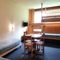 High above the Tarentaise Valley, this charming studio in Arc 1600 offers a cozy retreat for your alpine adventures. Whether you're visiting for the thrill of skiing or the serenity of summer hiking, the property’s location places you at the heart of the action, with ski lifts and slopes just steps away. Wake up to breathtaking mountain views from your northern-facing windows and feel the crisp alpine air invigorate your senses. The nearby resort center, bustling with shops and restaurants, ensures convenience and lively ambiance throughout your stay. \n\nDesigned for up to four guests, this 28m² studio is thoughtfully arranged to maximize comfort and functionality. The living area features two single beds, while a separate sleeping alcove with bunk beds provides additional privacy. The kitchenette is equipped with electric hobs, an oven, microwave, and refrigerator, making it easy to prepare meals after a day of exploring. Modern amenities such as free Wi-Fi, a television, and a ski locker enhance your experience, ensuring both relaxation and practicality. \n\nArc 1600 is a gateway to the Paradiski domain, offering endless skiing opportunities in winter and scenic trails in summer. The vibrant resort center is just a short walk away, where you can enjoy local delicacies, shop for souvenirs, or unwind at après-ski spots. For families, the area provides ski schools and activities tailored to all ages, while nature enthusiasts can explore the nearby Vanoise National Park. \n\nWhether you’re seeking adrenaline-pumping slopes or tranquil mountain vistas, this studio is your perfect base for creating unforgettable memories in the French Alps.