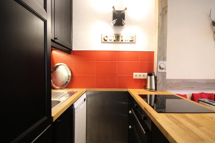 Spanning 58m², the apartment comfortably accommodates up to seven guests. The master bedroom features a plush 160cm double bed, an en-suite shower room, and a TV for added luxury. Two cozy cabin bedrooms provide additional sleeping arrangements with bunk beds and a trundle bed, perfect for families or groups of friends. The spacious living and dining area opens onto a fully equipped kitchen, complete with modern appliances including a dishwasher, Nespresso machine, and even a washing machine for longer stays. With thoughtful amenities like bed and bath linens (except for short stays and summer), independent ski lockers, and a welcoming ambiance, this apartment ensures a hassle-free and relaxing retreat.