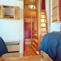 Designed to accommodate up to six guests, the apartment spans three levels, offering a cozy yet functional layout. The ground floor features a comfortable 140cm double sofa bed, while the upper floor hosts a bedroom with a 140cm double bed and two single beds. The mezzanine includes two bunk beds, making it ideal for families or groups of friends. Each sleeping area is thoughtfully separated by curtains for added privacy. The apartment is equipped with a modern kitchenette, complete with an induction hob, combination oven/microwave, refrigerator, dishwasher, Nespresso coffee maker, toaster, and kettle. Additional amenities include a bathroom with a bathtub, a separate toilet on the first floor, a washing machine on the mezzanine, and a secure ski locker.