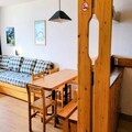 High above the Tarentaise Valley, this inviting apartment in the Nova 3 residence offers a perfect blend of alpine charm and modern convenience. Situated in the heart of Villards, Les Arcs 1800, it boasts ski-in/ski-out access, making it an ideal choice for winter sports enthusiasts. Whether you're gazing at the fir trees from the northeast-facing windows or soaking in the breathtaking valley sunsets from the southwest-facing balcony, every moment here feels like a retreat into nature's beauty. The residence is conveniently located near shops and shuttle stops, ensuring easy access to everything the resort has to offer. \n\nDesigned for up to six guests, the apartment features a cozy living room with two sofa beds, a cabin area with bunk beds, and a separate bedroom with twin beds. The fully equipped kitchen includes electric hobs, a microwave, mini-oven, refrigerator, dishwasher, and essential appliances like a coffee maker and toaster, allowing you to prepare hearty meals after a day on the slopes. The bathroom and separate toilet add to the comfort, while eco-friendly linens and cleaning services are available for an additional fee. Free Wi-Fi ensures you stay connected, and the covered parking included in the rental price adds convenience to your stay. \n\nBeyond the residence, Les Arcs 1800 offers a vibrant mix of activities year-round. In winter, explore the expansive Paradiski domain, renowned for its world-class slopes and stunning alpine vistas. Summer transforms the region into a haven for hikers, cyclists, and nature lovers, with trails winding through lush landscapes and opportunities for paragliding over the valley. The nearby shopping mall, restaurants, and après-ski options ensure that relaxation and entertainment are always within reach. \n\nWhether you're seeking thrilling adventures or peaceful moments surrounded by nature, this apartment provides the perfect base for creating unforgettable memories in the French Alps.