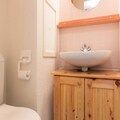 Designed to comfortably accommodate 4-5 guests, this 35m² duplex combines practicality with cozy charm. The main level features a welcoming living area with a 140cm sofa bed, a TV, and a fully equipped kitchen complete with electric burners, a mini oven, microwave, refrigerator, dishwasher, and all the essentials for preparing hearty meals. Upstairs, the mezzanine offers a peaceful sleeping area with a double bed, two bunk beds, and a bathroom with a bathtub and toilet. The layout ensures both privacy and comfort, making it ideal for families or small groups.