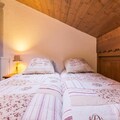 Step inside and be greeted by a warm and inviting space designed for comfort and practicality. The first level features a bright living room with a TV lounge and dining area that opens onto a fully equipped kitchen. Here, you'll find everything you need, from ceramic hobs and a combination oven to a dishwasher and even a washer/dryer. The first bedroom offers two single beds and an en-suite shower room, while a separate bathroom and toilet add convenience. Upstairs, the mezzanine provides flexible sleeping arrangements with a sofa bed, pull-out bed, and a cozy second bedroom with twin beds. Bed and bath linens are provided, and the apartment includes free Wi-Fi, a private ski locker, and a covered parking space.