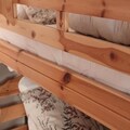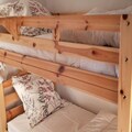 Designed to accommodate up to six guests, the 45m² apartment is thoughtfully arranged for comfort and functionality. The open-plan living and dining area features a cozy sofa bed and trundle bed that convert into a spacious double bed, perfect for relaxing evenings by the TV. The fully equipped kitchen includes modern appliances such as a ceramic hob, oven, microwave, refrigerator, and dishwasher, making meal preparation a breeze. The master bedroom boasts a plush double bed and an en-suite shower room, while the children’s bedroom with bunk beds adds a playful touch. A separate bathroom and toilet ensure convenience for all guests.