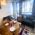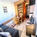 High above the bustling streets of the Village des Villards, this charming one-bedroom apartment offers a cozy retreat with breathtaking views of Mont Blanc and the surrounding alpine landscape. Whether you’re seeking a peaceful escape or an active adventure, this residence provides the perfect balance of comfort and convenience in the heart of Les Arcs 1800. Imagine sipping your morning coffee on the north-facing balcony as the first rays of sunlight illuminate the majestic peaks in the distance. The tranquil setting invites you to unwind and reconnect with nature while still being steps away from the vibrant village life below. \n\nDesigned to accommodate up to four guests, the apartment features a thoughtfully arranged living space with a sofa and a wingback table that maximizes functionality. The closed bedroom includes a double mezzanine bed and a double bed, ensuring restful nights for everyone. The kitchenette is equipped with modern amenities, including induction hobs, an oven, refrigerator, and microwave, making it easy to prepare meals after a day of exploration. The bathroom, complete with a bathtub and toilet, adds a touch of relaxation to your stay, while the television offers entertainment for cozy evenings indoors.\n\nConveniently located near shops and dining options, the residence is also well-connected by shuttle services, making it easy to explore the wider area. Parking options include covered, outdoor, and roadside spaces, ensuring hassle-free access throughout your stay. For eco-conscious travelers, linens and end-of-stay cleaning are available for an additional fee, adding to the sustainable charm of this property.\n\nWhether you’re drawn to the slopes in winter or the hiking trails in summer, this apartment is your gateway to the best of the French Alps. With Mont Blanc as your backdrop and the lively Village des Villards at your doorstep, unforgettable memories await in this alpine haven.