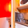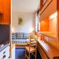 The apartment is thoughtfully designed to maximize comfort and functionality, featuring two comfortable 80cm sofa beds, a TV, and a compact kitchenette equipped with essential appliances such as a microwave, refrigerator, toaster, and electric coffee maker. The small boat-style shower stall and separate toilet ensure privacy and convenience, while eco-friendly linens and end-of-stay cleaning services are available for an added touch of sustainability. Free Wi-Fi throughout the residence keeps you connected during your stay.