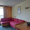 This 40m² apartment, perched on the 6th floor of Nova 3, is designed to comfortably host up to six guests. The southwest-facing balcony provides breathtaking views of the surrounding mountains and valley, creating the perfect backdrop for your mornings or evenings. Inside, the living room features two single beds, complemented by a separate bedroom with two more single beds and a cozy sleeping alcove with bunk beds. The fully equipped kitchen, complete with an oven, microwave, dishwasher, and more, makes it easy to prepare meals after a day of exploration. A bathroom with a bathtub and a separate toilet add to the convenience, while Wi-Fi and a television ensure modern comforts.