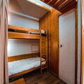 Inside, the 40m² apartment is thoughtfully designed to accommodate up to six guests. The living room features a pull-out sofa bed, while a separate bedroom offers a comfortable double bed. A cozy sleeping alcove with bunk beds adds to the charm, making it ideal for families or groups of friends. The fully equipped kitchen, complete with a refrigerator, dishwasher, and coffee maker, opens into the living area, creating a welcoming space for shared meals and relaxation. Modern amenities like Wi-Fi, a television, and a washing machine ensure a convenient and comfortable stay.