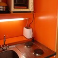 The 24m² studio is thoughtfully designed to accommodate up to four guests, making it ideal for couples, small families, or close friends. The living room features two comfortable single beds, while a separate sleeping area includes a set of bunk beds (note: the upper bunk is not suitable for children under six). The open-plan kitchen is fully equipped with modern appliances, including an electric stovetop, oven, refrigerator, toaster, kettle, coffee maker, and microwave, allowing you to prepare hearty meals after a day of exploration. A bathroom with a bathtub and toilet, along with a television in the living room, ensures a relaxing and convenient stay.