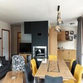 Spanning 70m², the apartment comfortably accommodates up to eight guests. The living room, complete with a cozy fireplace and a sofa bed for two, invites you to relax after a day of adventure. Two well-appointed bedrooms provide flexible sleeping arrangements, including a double bed and two sets of bunk beds. The fully equipped kitchen, featuring modern appliances such as a ceramic hob, oven, microwave, and dishwasher, ensures you can prepare hearty meals to enjoy with loved ones. Additional amenities include Wi-Fi, a television, a private ski locker, and a covered parking space, all designed to enhance your stay.