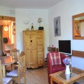 This thoughtfully designed 25m² studio, situated on the 6th floor with elevator access, comfortably accommodates up to four guests. The living room features a double sofa bed, while a sleeping alcove offers bunk beds, making it perfect for families or small groups. The northeast-facing balcony provides stunning views of the surrounding forest and mountains, a perfect spot to start your day with a cup of coffee. The fully renovated kitchen is equipped with modern amenities, including induction hobs, a combination oven/microwave, a dishwasher, and a refrigerator, ensuring you have everything you need for a comfortable stay. A cozy bathroom with a bathtub and toilet completes the space, while additional amenities like Wi-Fi and a television add to your convenience.
