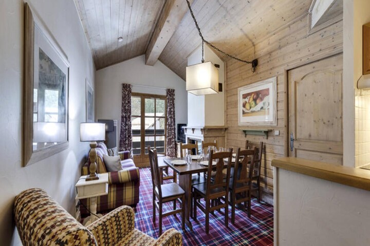 In the enchanting alpine village of Arc 1950, where cobblestone streets meet the serenity of snow-covered peaks, the Hameau du Glacier Residence offers a luxurious retreat for travelers seeking both adventure and relaxation. This pedestrian-only resort is seamlessly connected to the renowned Paradiski ski area, boasting 425 kilometers of pristine slopes for skiers and snowboarders of all levels. Imagine waking up to the crisp mountain air, stepping out into the heart of the Alps, and heading straight onto the slopes from this ski-in/ski-out residence. The charm of Arc 1950, with its vibrant atmosphere and picturesque surroundings, sets the stage for unforgettable moments. \n\nThe apartment spans 55 square meters and is thoughtfully designed to accommodate up to four adults and two children. It features two cozy bedrooms, including a double bedroom with an en-suite bathroom and a twin bedroom, ensuring comfort for families or groups. The living room invites you to unwind with its sofa bed and warm ambiance, while the fully equipped kitchen and dining area make it easy to share meals and laughter after a day of alpine adventures. Modern amenities such as Wi-Fi, a ski locker, and a separate shower room add to the convenience, while the included services—beds made upon arrival, bathrobes, and end-of-stay cleaning—ensure a hassle-free stay. \n\nGuests of the Hameau du Glacier Residence have access to a comprehensive wellness area, featuring an outdoor swimming pool, jacuzzi, sauna, steam room, and fitness facilities. Whether you’re soaking in the jacuzzi under the starry sky or rejuvenating in the sauna, the wellness area provides the perfect balance to the exhilarating slopes. Nearby, the village offers charming restaurants, shops, and après-ski activities, making it a lively hub for relaxation and entertainment. \n\nChoose this residence for its unbeatable location, premium amenities, and the unique charm of Arc 1950. Whether you’re here for the thrill of skiing or the tranquility of the mountains, the Hameau du Glacier Residence promises a holiday filled with comfort, adventure, and lasting memories.