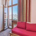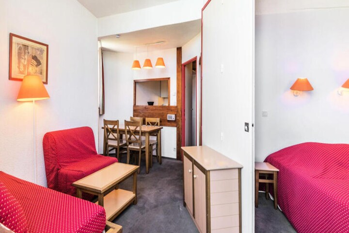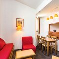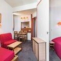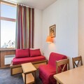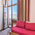 The residence offers a comfortable and convenient base for your alpine getaway. This 28 m² apartment is situated on the 10th floor of the residence, with easy access via an elevator. The accommodation includes a living room with a sofa bed, trundle bed, and a convertible armchair, as well as a dining table for four. The bedroom features a double bed, while the apartment also has a bathroom with a separate toilet and a balcony with stunning views.