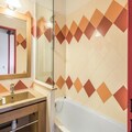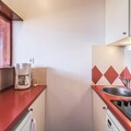 The apartment comes with an open kitchen that is fully equipped for a self-catering stay, with essential appliances and utensils for preparing meals. Other notable amenities include a separate toilet and a convenient location on the 7th floor of the building, with elevator access. The accommodation does not cater to guests with reduced mobility, and the residence requires a security deposit of €500. The residence's proximity to various services such as the children’s playroom, restaurant, and entertainment facilities adds to the overall convenience of the stay, though certain services such as the daily towel change and additional linen may incur extra charges.