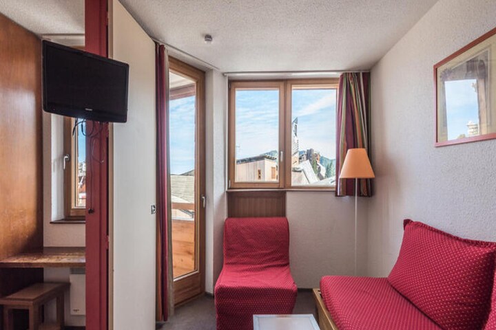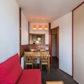A property with a cozy and family-friendly ambiance, this charming holiday rental offers a well-designed space accommodating up to 5 guests. The living area features a comfortable sofa bed, a convertible armchair, and a trundle bed, while the double bedroom provides additional sleeping options. Guests can unwind on the mountain-view balcony, offering scenic vistas, or utilize the open kitchen and spacious living room equipped with a dining table and seating for up to five. The property includes one bathroom with a bathtub and a separate toilet. Pets are allowed for an additional fee, and amenities such as a baby kit are available on request. Free activities such as exploration of nearby family-friendly spaces and daily mountain views make this accommodation an excellent choice for families or groups.