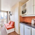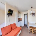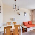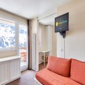 Property along with its prime location offers a comfortable and functional space for guests looking to enjoy a ski-in, ski-out experience. This 32m² apartment accommodates up to 2 guests, featuring a cozy living room, a fully equipped kitchen, and a bedroom with a double bed. The apartment also includes a spacious bathroom with a bathtub-shower and a separate toilet. The private balcony offers stunning mountain views, providing the perfect spot to relax after a day on the slopes. Pets are allowed for an additional fee, and a baby kit is available on request, subject to availability. Daily cleaning services and linen changes are offered at extra costs, ensuring a comfortable stay.
