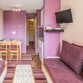 Located in the Falaise district, this residence offers a prime position with panoramic views of the Morzine valley and the resort. With direct access to shops and restaurants, as well as being close to the largest mountain water park, Aquariaz, this property is perfect for a ski-in/ski-out stay. The Malinka building, where your 28 m² rental is located, provides easy access to the slopes and other amenities. The apartment features a living room with 2 sofa beds and an additional trundle bed, an open kitchen, a separate bedroom with a double bed, and a bathroom with a bathtub-shower. The apartment also includes a separate toilet and a balcony to enjoy the stunning views.