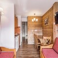 The open kitchen area, located within the living space, offers essential appliances for self-catering, ensuring a comfortable and flexible stay. While the accommodation is basic, it provides all the necessary amenities for a relaxing mountain getaway. The studio's ski-in/ski-out access adds to the convenience, while the availability of additional services like towel changes and daily housekeeping ensures that guests' needs are met throughout their stay. The residence is designed to provide a comfortable, no-fuss experience with excellent access to nearby attractions.