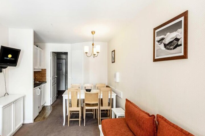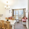 This 35m² ski-in/ski-out apartment, located in the Falaise district, offers a comfortable base for up to 4 guests. The accommodation includes one bedroom with a double bed, a cabin area with two bunk beds, a living room with a convertible sofa bed, a fully equipped kitchen area, a bathroom, and a separate toilet. The apartment also features a furnished balcony with a village view, facing east, perfect for enjoying the surroundings. Additionally, it provides Wi-Fi for convenience and is located just steps from the slopes, offering a hassle-free ski experience.