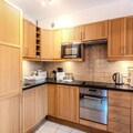 The apartment boasts a fully equipped kitchen with modern appliances, including a hob, microwave, oven, dishwasher, freezer, and a raclette machine for a taste of local cuisine. Additional facilities such as a washing machine, separate shower room, and ample storage enhance the convenience of longer stays. Guests are welcomed with bathroom products and cleaning supplies, ensuring a stress-free experience from arrival to departure.