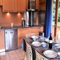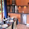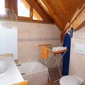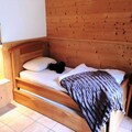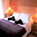 The first floor features an open-plan, fully equipped kitchen with a dishwasher, microwave, and raclette machine, along with a cozy dining area and living room, both leading to a balcony. The second level hosts two comfortable bedrooms: one with a double bed and the other with four single beds, complete with an en-suite shower room. A shared jacuzzi and ski storage area enhance your stay, while a covered terrace and outdoor parking are available. Guests will enjoy Wi-Fi, a wood stove, and essential amenities, including beds made on arrival and end-of-stay cleaning. Pets are welcome with a supplement.