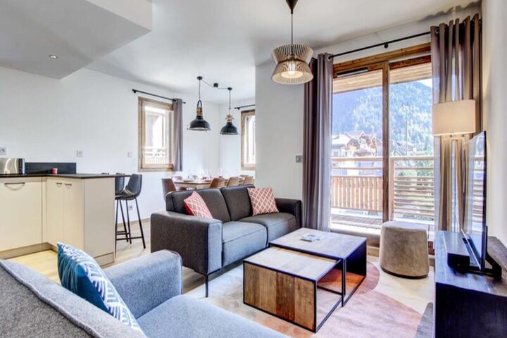This modern, spacious apartment ideally located just a few steps from the Super-Morzine gondola, offering easy access to both winter and summer activities in the heart of the resort. Situated on the 1st floor with an elevator, this 77m² apartment comfortably accommodates up to 8 guests. It features a welcoming entrance hall, a sleeping area with two single bunk beds, and three well-appointed bedrooms. Bedroom 1 has a double bed with an adjoining shower room and WC, while Bedrooms 2 and 3 offer flexibility with either two single beds or one double bed, one of which has an en-suite shower room. The apartment also includes an independent shower room with a WC.